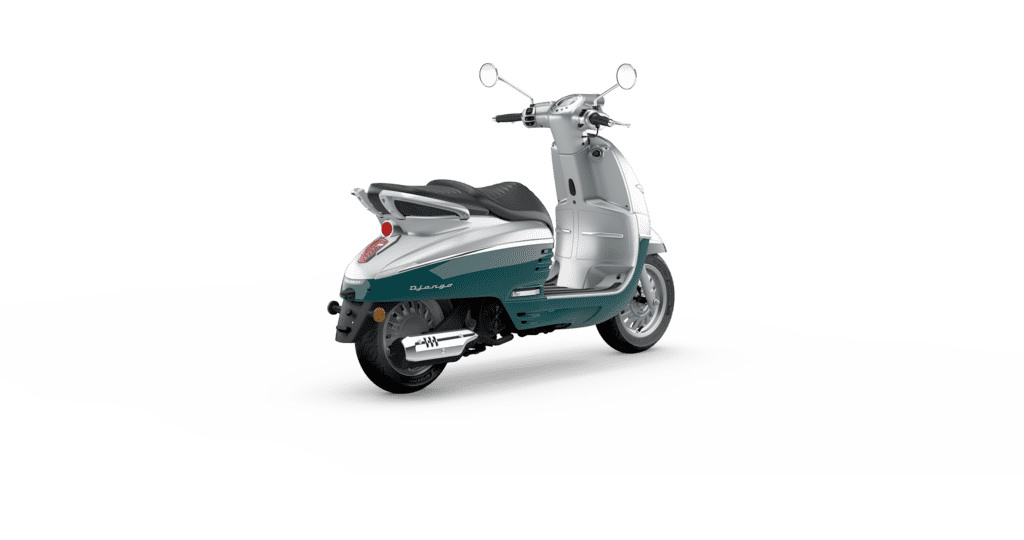 Django Classic 125 cc, dans son esprit rétro hérité du mythique modèle Peugeot S55, incarne le charme classique et l’élégance à la française.