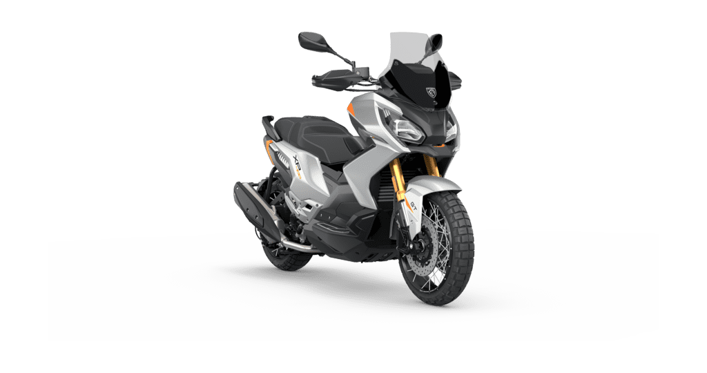 Peugeot Motocycles propose XP400, un puissant maxi scooter de 400cc. Fabriqué en France, XP400 complète ainsi la famille des scooters Premium de la marque. son pare-brise transparent et son plancher alu renforcent le caractère haut de gamme de XP400 Allure.