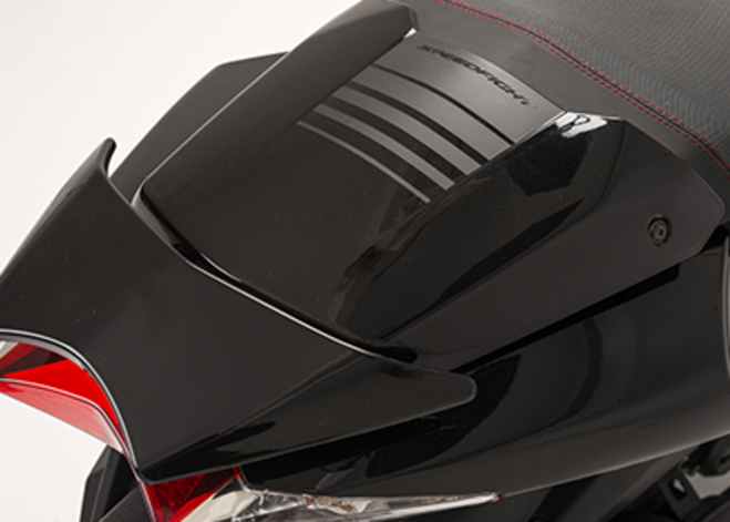 Sauvage. Avec sa ligne agressive, le Speedfight 4 semble prêt à fondre sur sa proie, sans perdre de temps. Le style sportif est souligné par la double couture de la selle.Avec ses optiques lenticulaires et son museau profilé, le Speedfight semble prêt à dévorer l’asphalte.